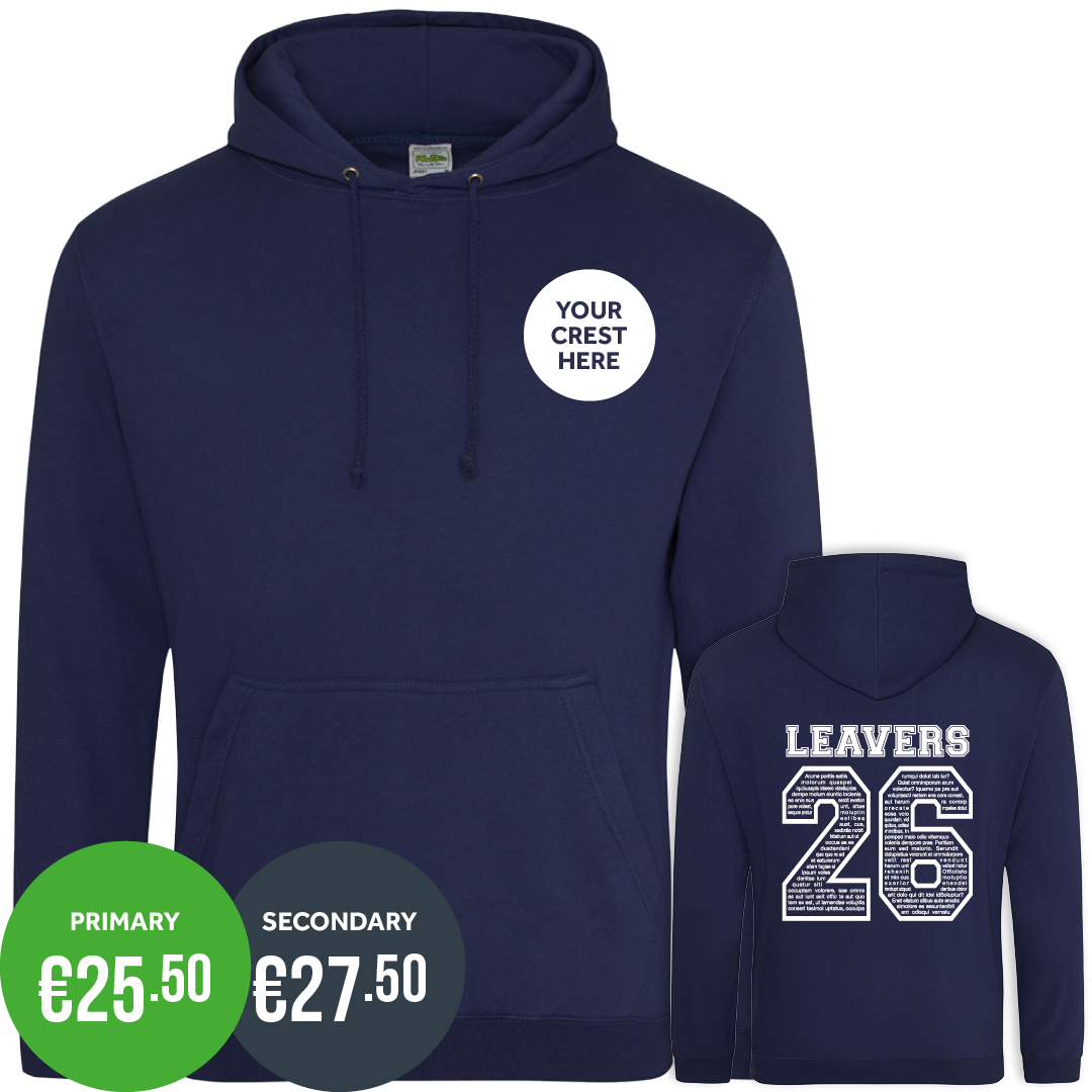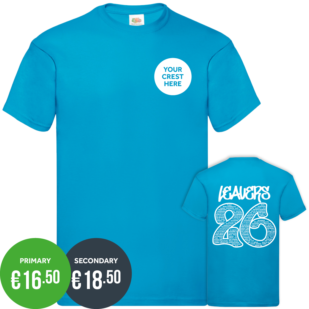 All t-shirts will come preprinted with your school logo and Leavers design.